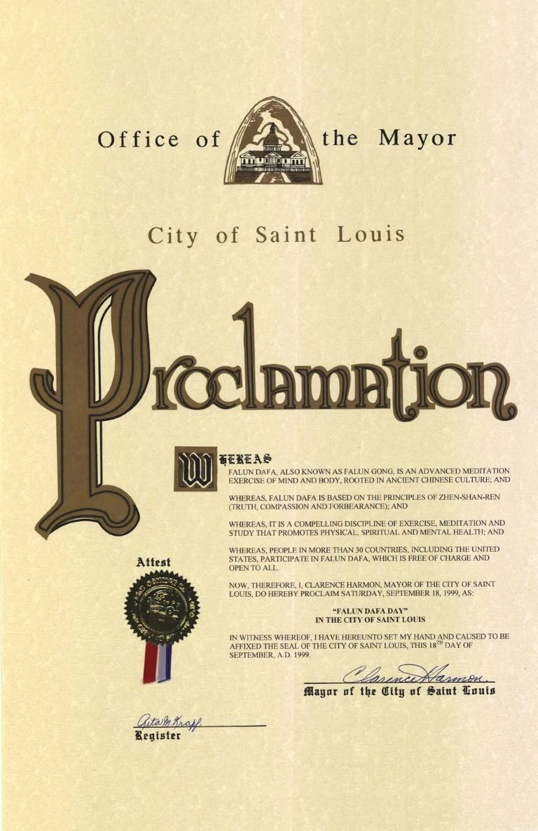 “有鉴于,法轮大法,亦称法轮功,为一根植于中国古老文化的高级性命双修功法;