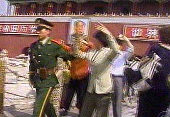 抗议人士被公安又踢又打,强行拉入汽车,连一些小孩也被逮捕。当时天安门广场上有许多观光客。