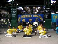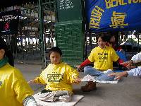 两位女士在仔细观看着学员们演示功法动作,然后说:他们真平和啊!他们哪象反政府的人呢?另一位男士在旁边说:我怎么也不理解为什么中国政府要镇压他们!