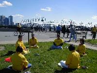 一位从大陆来美探亲的中年妇女看到学员们炼功的宁静祥和的场面之后,不由地停下步来问一位学员:“你们还在炼呀?大陆可都不许炼了!”学员回答说:“法轮功在全世界几十个国家洪传,受到各国人们广泛一致的好评,学炼的人越来越多。”学员还回答了她所疑惑的问题。最后她拿了资料,笑容满面地同学员道别,满意离去。我们真为她高兴,又一个被蒙蔽的善良人澄清了思想,获得了正确的认识。
