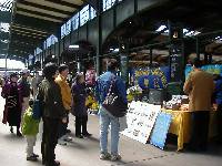 一部分学员在站在大厅和码头的必经之路,发放介绍大法和江泽民残酷镇压法轮功学员的报纸和书籍,并向过往行人洪法。一对学员是国内某大学的教授,不顾年迈和强劲的寒风,一大早就和女儿面带微笑地在外面发放资料,他们的行为也深深地感动着其他的学员。