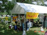 许多人过来取大法资料并登记参加洪法班,有些一看到横幅就知道这是中共正在镇压的法轮功,他们对中国政府残酷迫害法轮功学员非常气愤。有一位对我们说:“你们幸好不在中国,……”,有的看了我们的功法展示后告诉我们,中国政府在破坏自己国家的优秀传统文化。