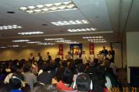 下午3时30分,李洪志师父突然出现在交流会会场。在全场学员的热烈掌声中,师父以“久违了”作为开场进行了30分钟的即席演讲。讲话中,师父肯定了走出来的学员为证实大法做出的一切,同时讲解了当前的形势和大法所面临的情况。