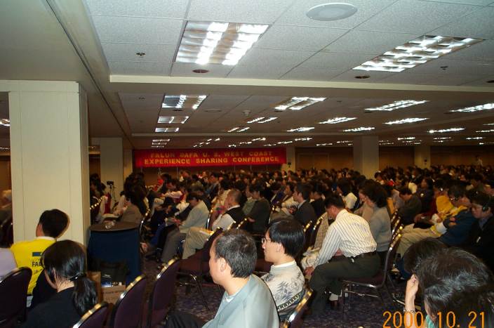 2000年10月16日至22日为加州十一个城市的“法轮大法周(日)”。20日,500名主要来自加州的学员在旧金山举办了呼吁国际社会帮助制止镇压的游行及新闻发布会。今日上午9时整,800多名各种族学员在旧金山Hyatt Regency宾馆开始举办修炼心得交流会。与会学员就“如何突破个人修炼框框”、“走出来证实大法、向世人说明真相”上台讲述自己的体会和认识。会场气氛感人。