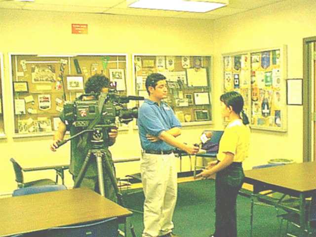 两个学员在奥德赛的公共图书馆接受当地CBS电视台一个小时的专访,与以往不同的是,