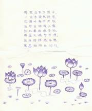 几经辗转周折从狱中传出,是狱中同修用蓝色圆珠笔精心绘制而成的,同时题有小诗二首,一纸千金,凝聚多少力量才能出现在你我手中。