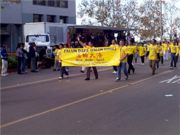 10日中午,美国学员凯文打电话来告诉我们这个游行的事。他也是刚听说就立即打电话去找主办单位─郡政府联系。主办单位一口答应了。因为时间已经很晚,大家立即分头通知。因为这个游行规模很大,我们马上和洛杉矶学员联系希望他们来些学员。