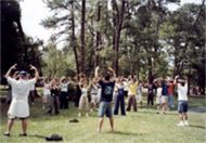 这一精神运动是1992年从中国开始传授的,最近开始吸引大量的修炼者(译者注:法轮功从传出后,修者日众,98年即达到一亿人修炼,从而遭至中共镇压,并非只是从最近才开始吸引大量的修炼者)。周女士说“是他在中国的人数造成了这样的反应和镇压。法轮功没有政治目的。我们只是希望中国政府不干扰我们”。