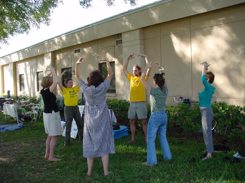 露茜·周,一名加拿大法轮功发言人说,超过40个国家的一亿多人在参加这一“舒缓的功法练习”─包括手臂的圆弧状运动和盘腿打坐,拥护其核心原则“真、善、忍”,并努力放弃个人的不良习惯及对人有害的情绪,比如愤怒和妒嫉。