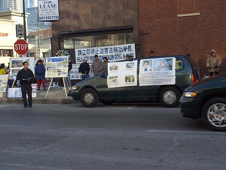 十一月二十四日,正值感恩节的第二天,芝加哥领事馆照常办公。约四十余名芝加哥地区法轮功学员前往领事馆请愿,要求中国政府立即停止秘密审判并释放法轮功学员、美国永久居民滕春燕及其他被关押的法轮功学员。