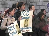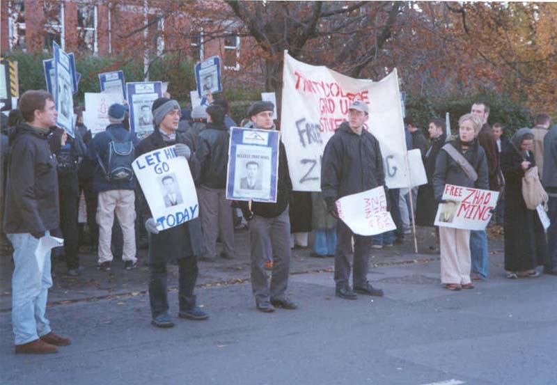 11月22日,由爱尔兰Trinity大学研究生会、学生会组织的“释放赵明”集会如期举行。此次活动得到了英国上议员莫恩、国际特赦组织(都柏林中心、Trintiy小组、UCD-爱尔兰国立大学都柏林分校小组)的支持和参与。有来自Trinity大学、爱尔兰国立大学和爱尔兰城市大学的学生、莫恩夫妇以及社会上的正义之士参加,爱尔兰和一些英国的学员也去支持他们的活动。