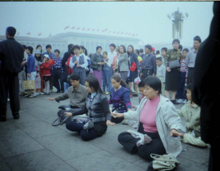 2000年10月2日上午天安门广场镇定自若的炼功人