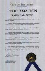 我,戴夫.温,工业市长,代表工业市议会,宣告2000年12月11日至15日为工业市(City of Industry)的“法轮大法周”,并号召全体市民和我共同祝愿大法弟子有一个无比欢乐的庆祝。