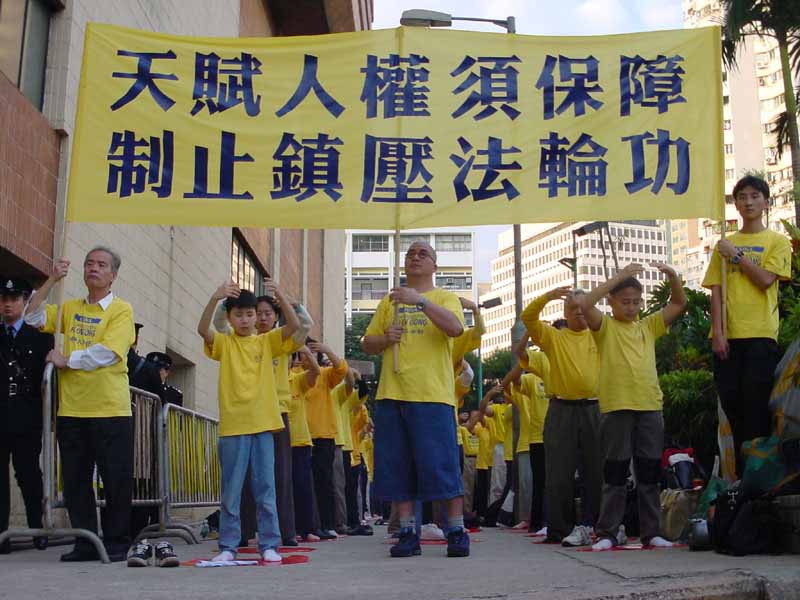 学员抵达中联办对面后,进行集体炼功并派出代表在深锁的大门外放下了请愿信,五时半前结束整个活动。