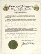 【明慧网2000年12月20日】 宾夕法尼亚州阿莱和尼县宣布2000年12月11日-17日为“法轮大法周”。