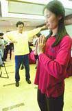 昨天,二名台湾法轮功研究学会成员在台北演示打坐及动功炼习。该团体宣称,亚太地区的法轮功成员计划于星期日在台北举行抗议,谴责大陆当局对法轮功成员的迫害。