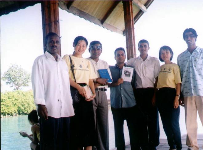 在一个小岛我们还遇见一位当地的医生。当我们把大法资料及中国镇压法轮功真实资料给他看后,他告诉我们,他知道我们师尊是一位救世主,他是来度人的。并对那么多人学大法表示赞叹,最后他向我们请了一本《转法轮》。
