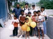 在渔村小岛,许许多多的孩子蜂拥着来拿印有法轮大法字样的气球,他们天真地跟我们学说:“法轮大法、法轮大法。”并高兴地将传单及小日历卡拿给家人。