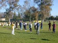 【明慧网2000年12月6日】 十二月三日,来自南加州阿罕不拉市及附近城市的八十多名学员在阿罕不拉市的阿蒙瑟(Almansor)公园举办了隆重的“法轮大法周”开幕典礼。一大早,公园里就飘扬着彩色的印有中英文“法轮大法”的气球。天气格外的明媚,象春天一样的温暖。