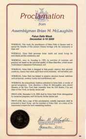 鉴于,法轮大法包含的非凡的传统值得特殊嘉奖。因此,我,布莱恩·M·迈克劳林,公正选出的第二十五区纽约州众议院议员,据此文件宣布并
