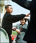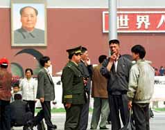 伪装成游客的警察在天安门广场不断盘问并逮捕法轮功学员