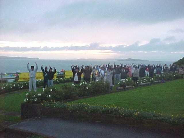 新西兰学员集体晨炼迎接首届世界法轮大法日