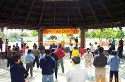 旧金山湾区法轮大法学员与2000年5月13日在南湾的Sunnyvale市Ortega Park举行了庆典与集体炼功活动,庆祝首届世界法轮大法日。李洪志师父曾在1996年10月在此向湾区学员讲法。