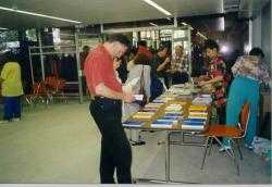 为迎接第一个“世界法轮大法日”的到来,瑞士大法学员日前开幕的,规模巨大的“日内瓦国际图书展”上,举行了为期二天的弘法活动。