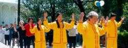 【明慧网2000年5月17日】 五月十三日,洛杉矶地区的法轮大法弟子在加州理工学院校园内举行活动庆祝首届“世界法轮大法日”。活动于上午10:30正式开始,几位当地学员致开幕词,并介绍了当地三所大学 (UCLA, USC, CALTECH) 校内注册的法轮功学生CLUB的校内炼功教功活动。之后大法学员向公众演示并教授了法轮功的五套功法动作。下午大家集体炼功后交流了心得,有九位学员作了真挚感人的发言。本次活动于下午5:30圆满结束。几家当地媒体进行了采访。
