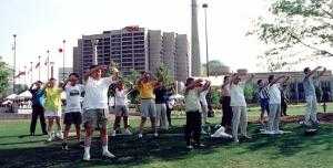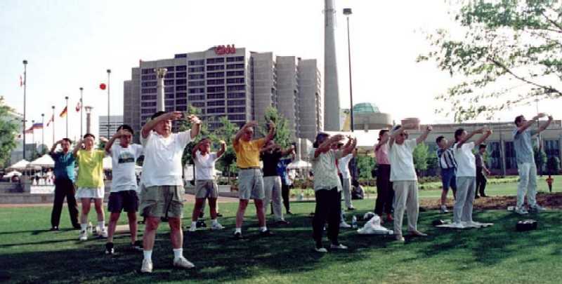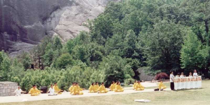 【明慧网2000年5月17日】 世界法轮大法日,亚特兰大学员分组分别在市中心的奥林匹克公园及游人不断的石头山公园炼功弘法。