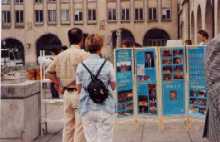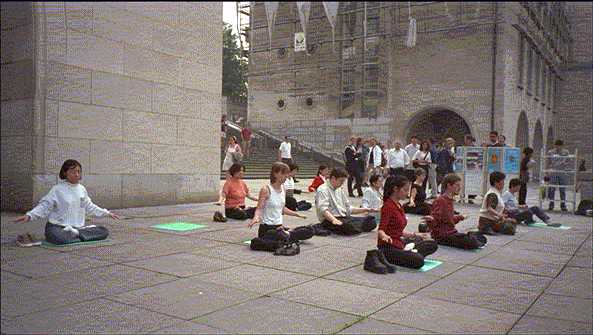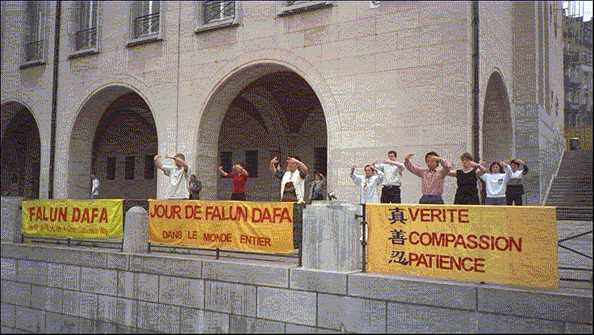 学员们一遍又一遍祥和地炼功.中间休息之余大家还进行了心得交流.一位学员深有感触地谈到师父的慈悲.就在几天前的交通事故中,汽车的前玻璃被他的头全部撞碎,自己骑的自行车彻底报废,他本人也被撞出去几米之外. 但却安然无恙.学员们都谈到今天炼功的感受非同一般,有的学员虽要上班,但也尽量抽出时间来和大家一起炼功,尽一份弟子的心.在广场的弘法炼功活动到下午5点结束,晚上大家还在一起交流了各自的心得.大家都有一个共同的心愿,就是希望所有的有缘人都能早日得法修炼,更愿法轮大法早日传遍世界的每一个角落. 比利时学员报导(2000年5月)