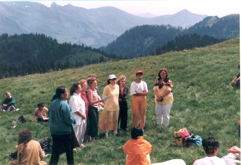 2000年6月,参加联合国发展会议的欧洲学员在瑞士阿尔卑斯山上的集体炼功