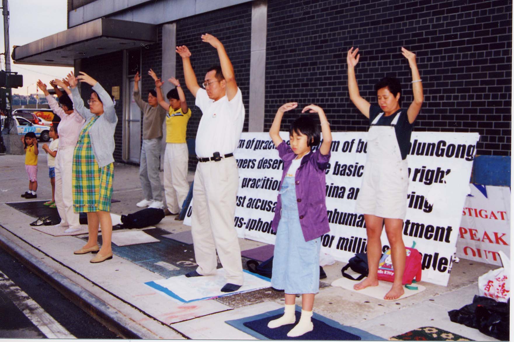 自由亚洲电台:法轮功学员在中国驻美大使馆前练功请愿