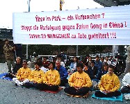 在此活动之前德国大法学会的负责人和中国大使馆联系,多次得到的回答却是大使不在,所有工作人员都不在,学员们得不到任何答复。今天活动刚开始,学员代表从警察那儿得知,中国使馆要求警察阻止学员来访,并拒收法轮功学员递交给中央领导人的信件。在场的一位警察对此态度十分不解,还向学员代表介绍道:他今年三月在北京旅游,在天安门广场上亲眼目睹中国警察殴打一位妇女,并强暴地将她拖上车带走。他说:作为警察我感到十分震惊,她只不过平静地展示动作而已。