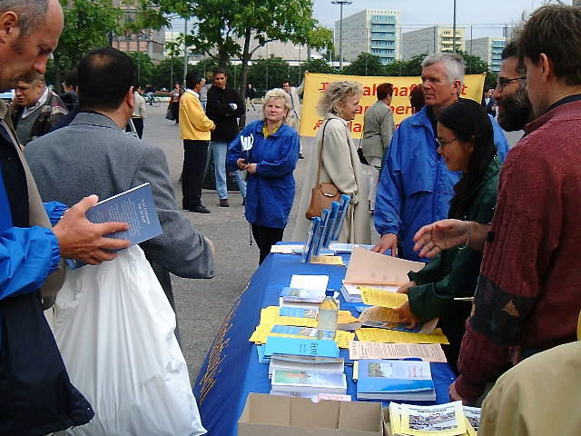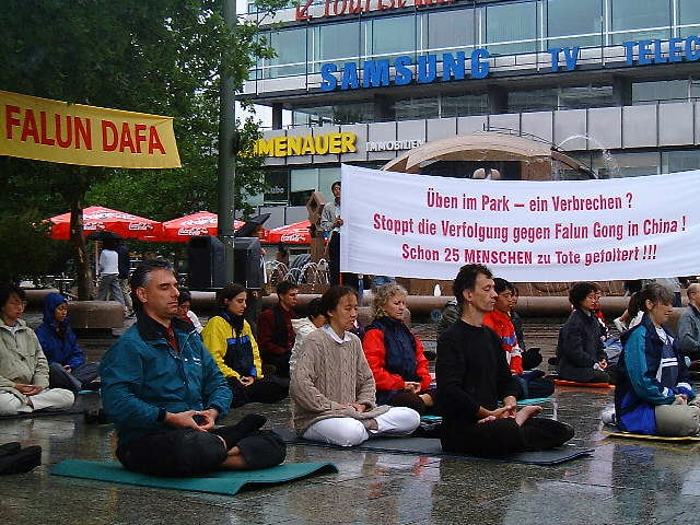 2. 2000年7月22日百名德国大法学员在柏林市中心的纪念教堂前举办弘法活动。向世人介绍法轮功,及大法学员在中国被迫害的情况。引起路人极大的关注。