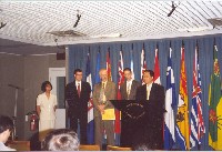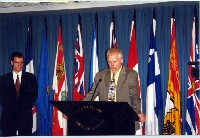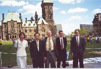 | 1) 学员和加拿大大赦国际秘书长Alex neve(中间)合影。 | 2) 国会大厦记者招待会,电视实况转播 | 3) 大赦国际秘书长Alex neve讲话 |