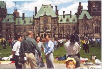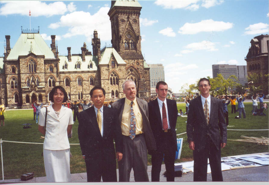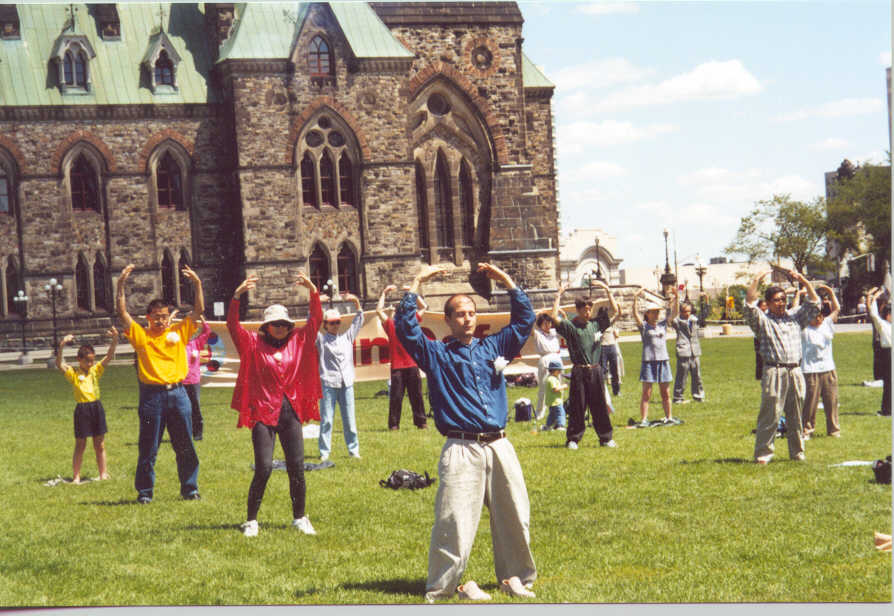 二十二日上午,学员们来到渥太华的中国城,向世人说明大法真相;只见大街两边、店铺内外,到处是大法弟子的身影,到处是人们了解大法真相的情景。有的人拿到介绍大法真相的报纸后,立即在街边阅读起来;有的人因对政府的镇压难以理解而摇头叹息;也有的人了解一些残酷镇压的事实,为国内学员所受的苦难而痛心……下午一点,大家又来到大使馆前弘法炼功。虽然无法与使馆方面取得联系,但是大家心态平和,气氛庄严而和谐。之后,学员们又学习了师父的最新经文,并交流加强学法和弘法的体会。