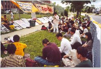 虽然最终我们没能进入领事馆,但是洪法活动在领事馆门口一直顺利进行,其间有不少小插曲,现摘录两则。