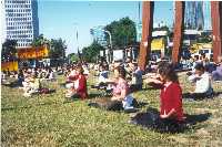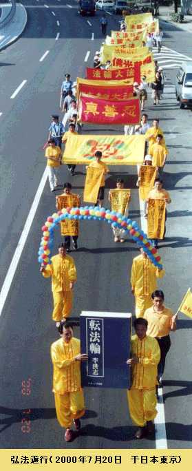 2000年7月20日是中国政府开始大规模镇压法轮功一周年,来自日本东京、千叶、琦玉、横浜等关东地区及大阪、广岛、仙台等地的近百名法轮大法学员,聚集在东京塔附近的芝公园,展示了法轮大法的五套功法,向世人说明法轮功真相。