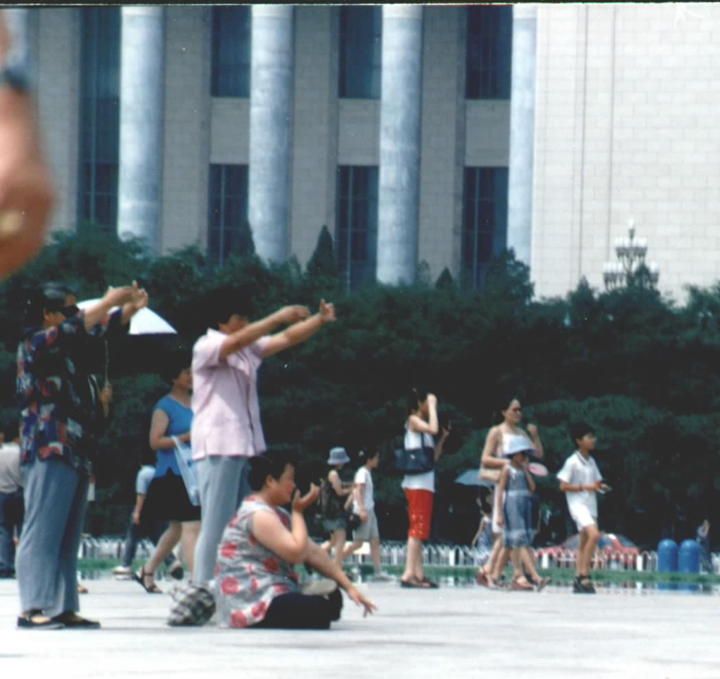 连续两天的大暴雨过后,7月6日的天安门广场的显得游人比平时多了许多。今天,来自全国各地的法轮功学员,用他们各自悟到的方式来维护和证实大法。他们以祥和对待恐怖,又一次在这世界上最大的广场上演绎了一场大善与大恶的鲜明对照。