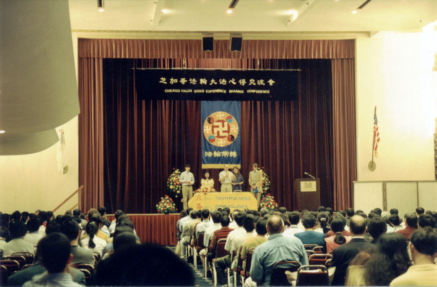 (下图为法会上五位大法弟子用五种语言朗读《论语》)