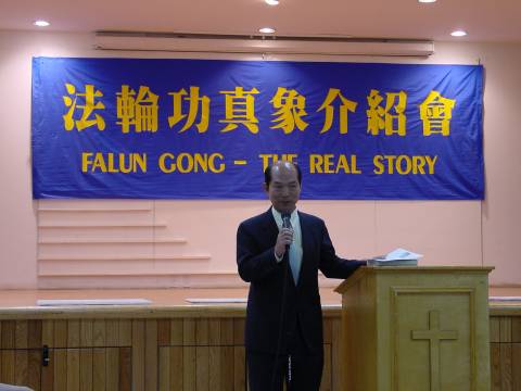 台湾洪吉弘先生的演讲,幽默而风趣,伴随着阵阵的笑声。洪先生原来是一位基督教的长老,现在是台湾法轮大法学会的负责人之一。他说,台湾是除中国大陆外,法轮功学员最多的一个地区。最初是由一对多病的老夫妇开始的。这对夫妇久医无效,1995年经大陆亲朋介绍去大陆学习法轮功。参加了老师九天讲法班后,很快身体全好了。回来后在阳明山建立了第一个炼功点。自此以后,法轮功在台湾就传开了,发展的势头很快。4、25事件后,台湾的法轮功的发展进入了高潮。到五月份,炼功点已由原来的几十个迅速增加为二百多个。7、20以后,中国政府的镇压成了对法轮功最大的宣传。有一位学员说,他去大陆旅游,发现大陆媒体每天都在铺天盖地地批判法轮功,他很奇怪,回台湾后就去法轮功的炼功点了解,发现这是一个非常好的功法,从此就成了大法弟子。这样的例子很多。现在台湾已有三百多个炼功点。刚才在会前放的纪录片《法轮大法在台湾》概括地介绍了法轮功在台湾的弘传情况。我是在一个偶然的机会接触到法轮功的,读了《转法轮》后感到,我一辈子要找的真理统统在里面,在圣经中找不到的答案,在这本书里都能找得到。希望在座的都能完整地读一遍《转法轮》,你炼不炼是另一回事,但读一遍这本书将是你这一生最大的福气。