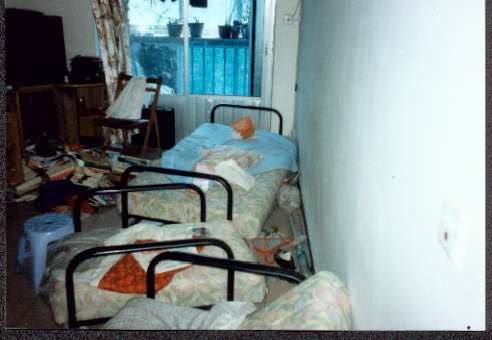 后来,我去要人并要钥匙,看见两名妇女被吊铐在车棚里,他们不让我见我爱人,指导员给了我钥匙,说:“你们愿上哪告就上哪告,我们有手续。”(但直到如今我也没有见到任何法律手续)。最后只让孩子见了一面,才知我爱人一直被铐着,当时她拒绝配合这种违法犯罪的猖狂行为,只好绝食绝水,以引起有关人士的关注,直到目前她还在绝食。
