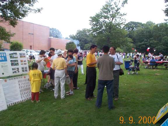 一对从北京来探亲的老年夫妇,一看到我们这么多法轮功学员在这儿炼功,第一反映是很惊讶,然后竖起大拇指连连对我们说:“法轮功,好样的!你们一定要坚持下去!”后来和他们聊起,才知道他已七十多岁,是一位医生,虽不炼法轮功,但对中国政府残酷迫害法轮功学员深感不满。学员向这位正直,善良的老人表示感谢,临别时送他一本书,方便他更多地了解法轮功。