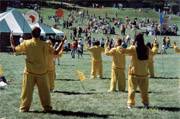 九月十七日下午,马里兰州洛城文化节在洛城 CIVIC CENTER 举行。本地及邻近的大法学员们作为中国文化的代表,也参加了这次的活动。这天是个秋高气爽的好日子,弟子们有的身穿印有“法轮大法”和“真、善、忍”中英文的黄色 T 恤衫,有的穿上作为民族服装的炼功服,在蓝天,绿地的映衬下,显得格外醒目,耀眼。