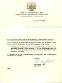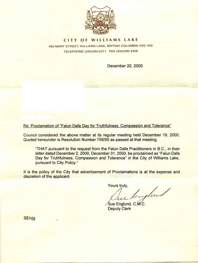 现在,我,Elaine Becke,密尔本市市长,决定:宣布2000年12月4-8日为密尔本市“法轮大法周”。
