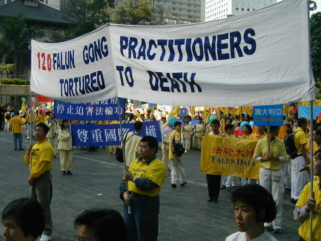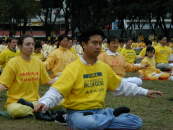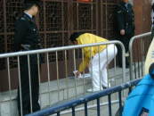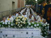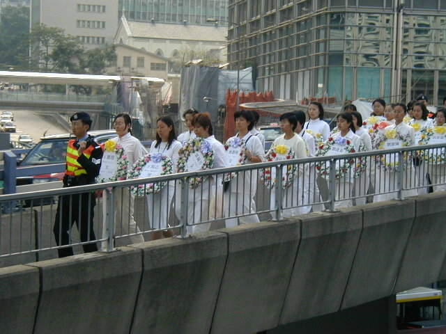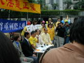 学员把请愿信放在“中联办”门外“中联办”外面和平的炼功场面