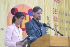 法会主持人宣读师父致奥兰多法会的贺信