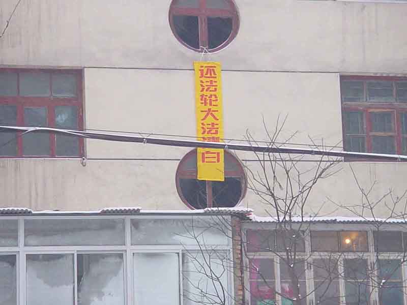 新年前某市邪恶势力再次猖狂抓捕三十余名大法弟子,大法弟子为了窒息邪恶,于新年前后走出来证实大法。附图。