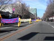 【明慧网2001年1月30日】 2001年1月27-28日,旧金山湾区学员参加了在圣荷西举办的越南人春节庆祝活动。学员们准备了越南文的洪法传单和横幅,并有会越语的学员现场介绍。两天中传单多次加印,又被发放一空。28日的游行中大法的队伍引人瞩目,沿途观众有70%-80%都欣然接受洪法传单。图为游行队伍。